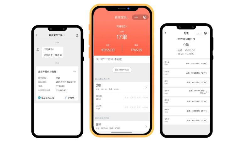 员工可以查看自己的业绩与提成,还能接收设置提成的消息提醒。